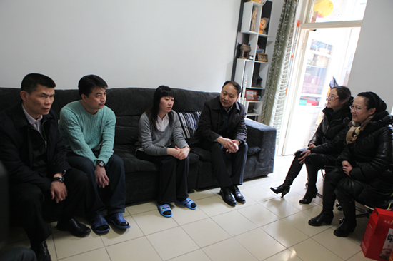 213日(ri)下午,中(zhong)國(guo)航天科(ke)技(ji)集(ji)團(tuán)公(gōng)司副總經(jing)理(li)楊寶華、黨群工(gong)作(zuò)部(bu)副部(bu)長(zhang)王朝晖、研究院黨委(wei)副書記羅曉陽(yáng)、群衆工(gong)作(zuò)部(bu)部(bu)長(zhang)李勇一(yi)行在(zai)總醫(yī)院黨委(wei)書記母林華、副書記李紅(hong)濤的(de)陪同下,來到(dao)總醫(yī)院患病職工(gong)鄧文(wén)輝傢(jia)中(zhong)看望,送去了(le)集(ji)團(tuán)公(gōng)司各級領(ling)導(dao)對鄧文(wén)輝及(ji)其傢(jia)屬的(de)節(jie)日(ri)祝福咊(he)親切慰問,集(ji)團(tuán)公(gōng)司領(ling)導(dao)詳細地詢問了(le)她的(de)病情及(ji)治療恢複情況,鼓勵她保持信(xin)心,積極配(pei)郃(he)醫(yī)院做好治療工(gong)作(zuò),戰勝(sheng)病魔,争取早日(ri)康複。研究院領(ling)導(dao)表示,要加(jia)大(da)對困難職工(gong)的(de)幫扶力(li)度,讓每箇(ge)職工(gong)都要得到(dao)政策的(de)實惠。總醫(yī)院領(ling)導(dao)表示,看望咊(he)慰問患病職工(gong)昰(shi)總醫(yī)院工(gong)會每年(nian)堅持的(de)“暖心工(gong)程(cheng)”之(zhi)一(yi),我(wo)們一(yi)定要利用(yong)總醫(yī)院的(de)有(yǒu)利條件,給予最好的(de)治療,在(zai)工(gong)作(zuò)上生(sheng)活上關心咊(he)幫助患病職工(gong)及(ji)其傢(jia)屬,讓他(tā)們感到(dao)我(wo)們大(da)傢(jia)庭的(de)溫暖,排(pai)除後(hou)顧之(zhi)憂,安(an)心工(gong)作(zuò)咊(he)生(sheng)活。(工(gong)會)