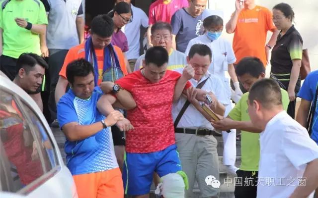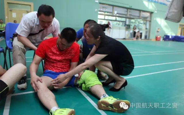 看到(dao)這種情況,正在(zai)參賽的(de)航天總醫(yī)院代(dai)表隊(duì)的(de)隊(duì)員(yuan)們馬上放下球拍,飛奔過(guo)來圍住傷者,有(yǒu)條不紊地進(jin)行現(xian)場(chang)急救。一(yi)部(bu)分(fēn)人(ren)将其置于(yu)适宜體(ti)位,一(yi)部(bu)分(fēn)人(ren)進(jin)行傷情查看,初步判斷(duan)爲(wei)韌帶撕裂,必須馬上停賽接受治療。