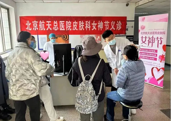 3月8日(ri),北京航天總醫(yī)院皮膚科(ke)在(zai)們(men)診樓一(yi)區(qu)三層開展(zhan)常見皮膚病及(ji)護膚問題的(de)義診及(ji)咨詢活動(dòng),爲(wei)廣(guang)大(da)女同胞們獻上一(yi)份節(jie)日(ri)的(de)祝福咊(he)春日(ri)的(de)溫暖。