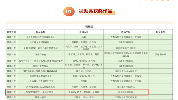 喜報|深耕口腔健康 護航居民(mín)微笑——我(wo)院口腔科(ke)青年(nian)醫(yī)師團(tuán)隊(duì)在(zai)京津冀第三屆暨北京第六屆健康口腔新(xin)媒體(ti)科(ke)普行動(dòng)中(zhong)榮獲"最佳科(ke)普獎"